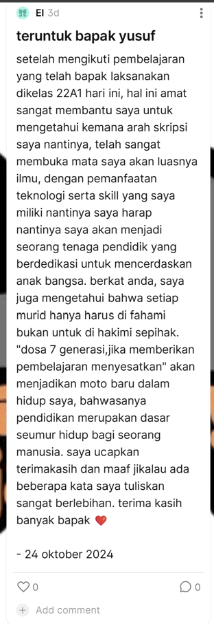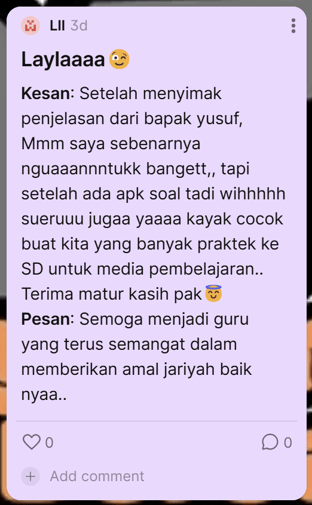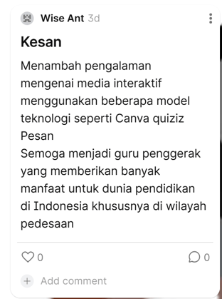 Berbagi praktik baik pemanfaatan teknologi dalam pembelajaran bersama.